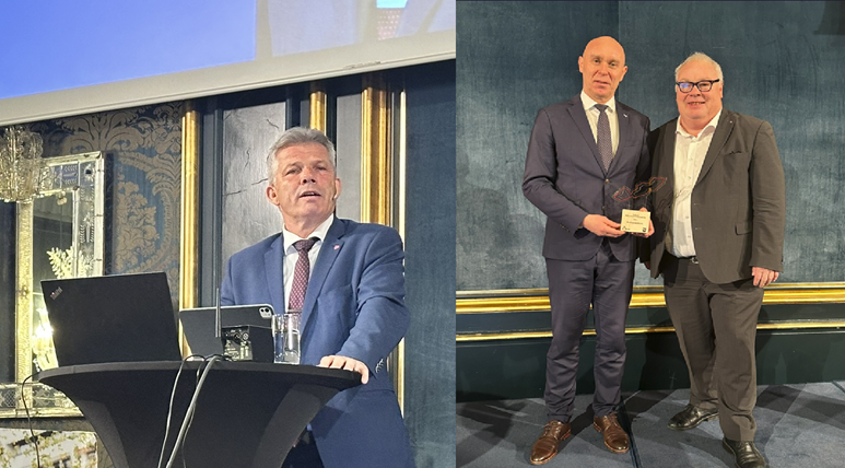 – Vi trenger denne prisen. Det blir bygget for lite, både i distriktene og i byene. Det er det mange grunner til, sa Kommunal- og distriktsminister Bjørnar Skjæran (til venstre i bildet). – En av årsaken til at Sandnes er gode, er skyldes målrettet jobbing over flere år, vi er tidlig inne i planprosesser og har god dialog med utbyggerne, sa ordfører i Sandnes Kenny Ettore Rettore i sin takketale, her med Bård Folke Fredriksen til høyre i bildet.